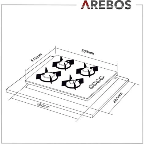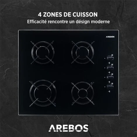 - [CUISINIÈRE À GAZ PUISSANTE] Cuisinière à gaz d’AREBOS de 4 feux. La cuisinière comprend un brûleur rapide de 3000 W, deux brûleurs semi-rapides de 1750 W et un brûleur de 1000 W. Il est parfait pour tout type d’utilisation, que ce soit pour rôtir, cuire, cuire à la vapeur ou faire frire.