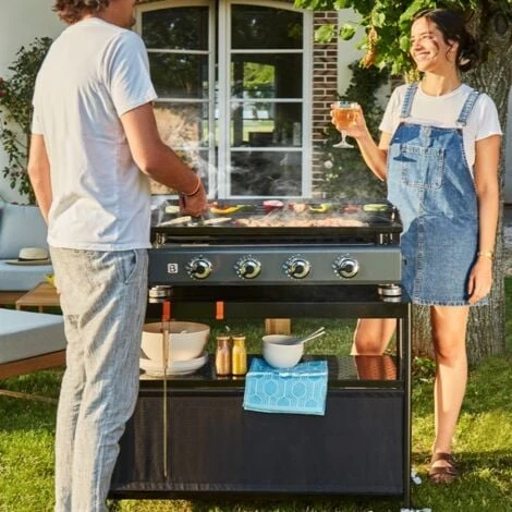 Universel et design sobre : d’une largeur de 100 cm, ce chariot peut accueillir votre plancha à gaz ou électrique de 1 à 4 feux sans difficulté. Grâce à son style épuré, il s’adaptera à tous vos extérieurs, que ce soit dans votre jardin, terrasse, balcon…