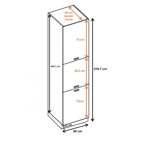 - Dimensions (L x p x h) : 60 x 58 x 218,7