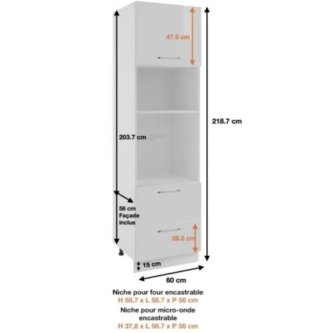 - Dimensions (L x p x h) : 60 x 58 x 218,7