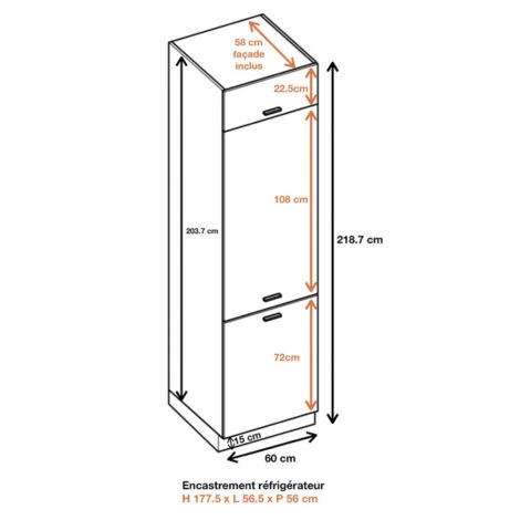 - Dimensions (L x p x h) : 60 x 58 x 218,7