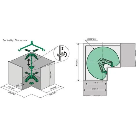 Utilisables dans des caissons d’angle de 800 ou de 900 mm.