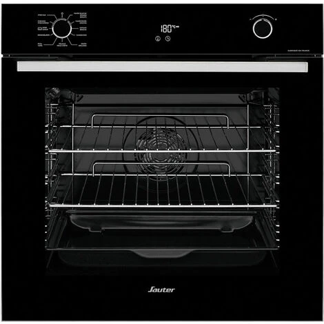 Four intégrable multifonction Sauter SOP6214LB doté de 8 modes de cuisson dont Pizza. Guide culinaire : 15 recettes programmées. Il suffit d’indiquer le poids et le type de plat, le four recommande le mode de cuisson, la température, la hauteur de plat et le temps de cuisson. QuattroPulse : Ce nouveau concept de construction du moufle fait circuler le flux d’air chaud dans la cavité avec une vitesse augmentée, uniformisant ainsi la répartition de chaleur. Résultat : des cuissons réussies et homogènes à tous les niveaux du four. Ecran TFT couleur 2,8 » : Crée pour être intuitif, clair et rapide cet écran couleur offre de nouvelles perspectives de programmation. Le four préconise automatiquement la température adaptée au mode de cuisson ou au type de plat sélectionné et à la hauteur de plat idéale.