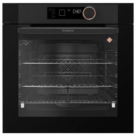 Four pyrolyse – 9 modes de cuisson dont Chaleur Tournante, Chaleur Combinée, Maintien au chaud et Pain – Afficheur Gourmet LED blanc – Manette sertie d’inox gravé avec un anneau intérieur cuivré – Préconisation de température – Mode Chef 6 plats (100% automatique) – Basse Température sur 10 plats – Guide culinaire pour 15 recettes – Fonction Séchage : ce procédé de déshydratation permet de sécher à une température, entre 60 et 80°C, nombre d’aliments différents comme les herbes aromatiques, fruits ou légumes. En empêchant la prolifération des bactéries, il permet ainsi de les conserver plusieurs mois – Gril variable 4 puissances – 3 niveaux de pyrolyse dont Pyro Express 59 min – Eclairage Halogène – Eclairage Halogène – Rail télescopique 60% – Cavité Enamélite – Porte froide – Contre-porte plein verre démontable – Fermeture douce de la porte SoftClose – Sécurité enfants – Finition Noir Absolu.