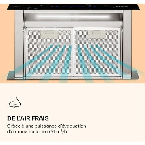 UNE ASPIRATION PUISSANTE ET SILENCIEUSE : Avec un débit d’air puissant de 576 m³/h et 10 vitesses de ventilation, notre hotte aspirante 60cm réduit les odeurs et filtre les fumées pour une meilleure qualité de l’air.
