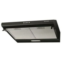 Hotte visière – Largeur 60 cm – 3 vitesses – Commandes mécaniques par touches – 2 filtres à graisse aluminium lavable au lave-vaisselle – Filtre à charbon fourni (référence FWAS) – Clapet anti-retour – Eclairage LED – Sortie Ø NC mm.