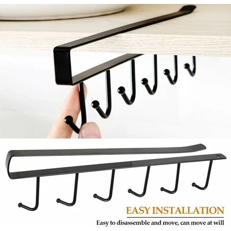 【GAGNER DE PLACE】 : Chaque porte-tasses suspendu contient 6 crochets pour suspendre jusqu’à 12 tasses. Crochet sous étagère se branche facilement sur le diviseur de votre placard, vous n’avez plus à vous soucier de ne pas avoir assez de place dans votre cuisine pour vos tasses.