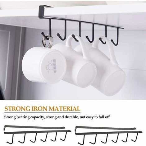 【MATÉRIAU DURABLE】 : Porte-tasses de cuisine fabriqué en fer durable et en acier inoxydable, il n’est pas facile de déforme, même pour suspendre des objets un peu lourds. Résistant à la rouille et aux chocs, il est parfait pour accrocher des tasses ou ranger des ustensiles de cuisine.