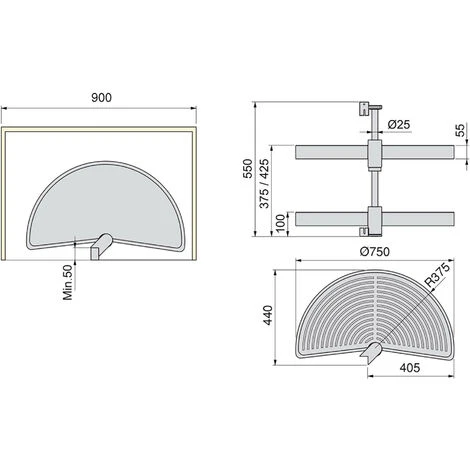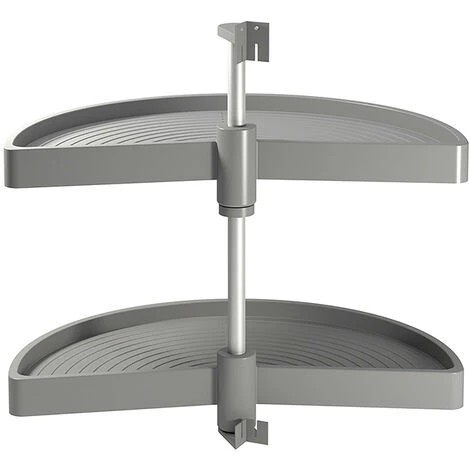 Plateaux tournants demi-lune conçus pour profiter de l’espace des meubles d’angle en L de la cuisine. Faciles à installer, ils peuvent être adaptés à des modules de plusieurs hauteurs. Ils sont disponibles pour des modules de 800 mm et de 900 mm en finition blanc et gris . Le système se compose de 2 plateaux et de leurs accessoires de montage fabriqués en plastique recyclable, antistatique, à haute résistance aux impacts et aux rayons UV, et d’une barre centrale en aluminium et finition anodisé mat. Ils offrent 20kg de capacité de charge par plateau.