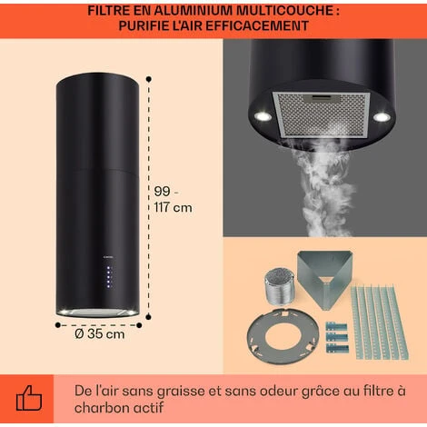 - Dimensions de la hotte aspirante : env. 35 x 60 cm (ØxH)