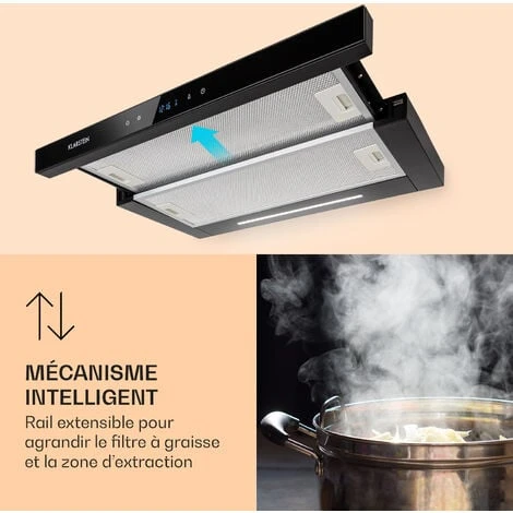Mécanisme intelligent : rail extensible pour agrandir le filtre à graisse et la zone d’extraction