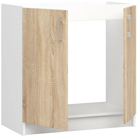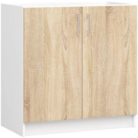 Meuble de cuisine bas AKORD S80 pour évier, LIMA modulable Blanc 80 cm 2 portes couleur Chêne Sonoma 1 étagère 80×44,5×82 cm