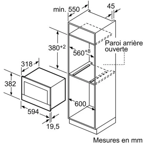 Dimensions de la cavité (mm) : 220 x 350 x 270