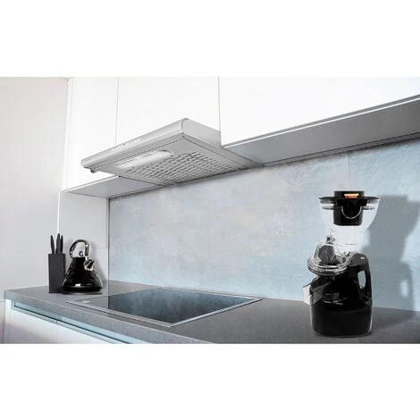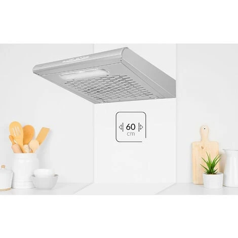- Éclairage LED : Sa lumière de 4W / 330 lm offre une vue optimale de la zone de cuisson avec une consommation d’énergie minimale et dure plus longtemps que les ampoules traditionnelles. Le niveau sonore lorsque la hotte est en fonctionnement varie entre 53 et 63 dB selon la vitesse d’extraction sélectionnée.