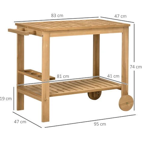 – Desserte de jardin, desserte pour plancha dotée de 2 roues et poignée très pratique et facile à déplacer