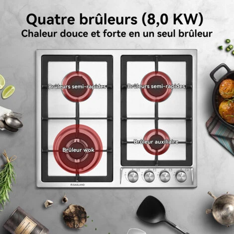 Gasland Chef inox Plaque de cuisson Ă gaz 60 cm 4 feux