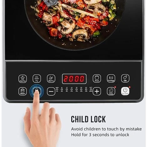 Cette cuisinière à induction haute performance de 2000 W est non seulement puissante, mais dispose également de 8 niveaux de puissance de 300 à 2000 watts. 8 réglages de température de 140°C à 464°C. Réduisez le temps de chauffe et gagnez ainsi du temps de cuisson. Ceci est très approprié pour les employés de bureau et les étudiants. Vous pouvez cuisiner n’importe quel type d’aliments que vous souhaitez cuisiner. Par exemple, vous pouvez faire frire un steak, faire frire des œufs, chauffer du lait, faire sauter, des spaghettis, de l’eau bouillante. Profitons ensemble de votre délicieuse vie !