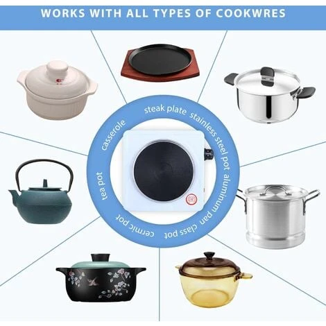 【Plaque de cuisson électrique compatible】 : Cette plaque de cuisson est compatible avec la fonte, le fer, le fer émaillé et l’acier inoxydable à base magnétique. Vous pouvez utiliser un petit aimant pour vérifier que la batterie de cuisine est compatible.