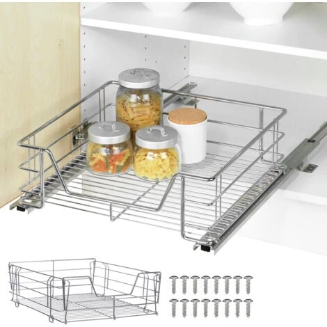 Une idée innovante pour votre meuble de cuisine. Grâce aux paniers sur rails pour armoires, c’est la fin du désordre. Un dispositif de rails faciles à déplacer vous permet de visualiser tous vos ustensiles de cuisine. Le tiroir supplémentaire pour votre meuble de cuisine. Essuie-mains, maniques, planches ou papier de cuisson y trouveront une place de choix. Installée en dessous de l’évier, elle conservera les ustensiles de cuisine, les sacs poubelles, les sacs de congélation ou encore les rouleaux de cuisine à portée de main. Se place, selon votre convenance au bas de l’armoire. Charge maximum sur la rallonge entièrement sortie: 8 kg. HxLxP: 18,5 x 50 x 40 cm Modèle en acier chromé poli miroir particulièrement massif. Utilisation flexible. Montage aisé, livré avec les vis.